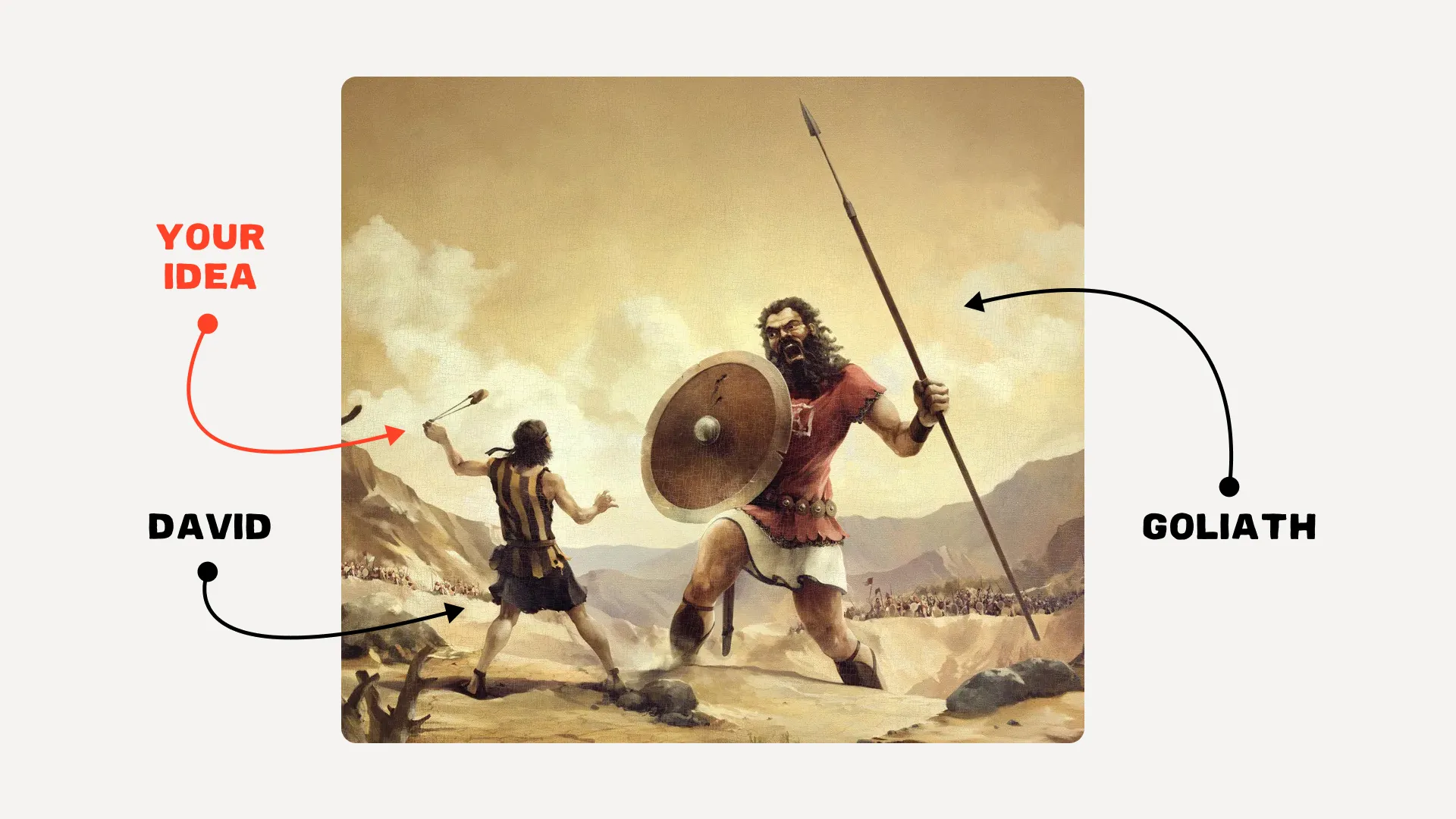 Think of your back pocket idea as David's stone against Goliath: Your big challenge & the hard path forward.